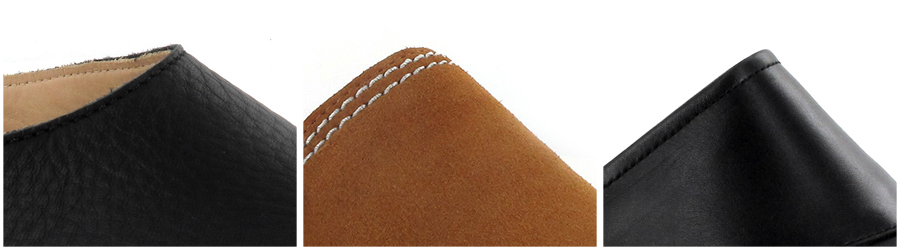 Die hauptsächlich verwendeten Lederarten sind: Nubuk-Leder und Kalbs-Leder.
